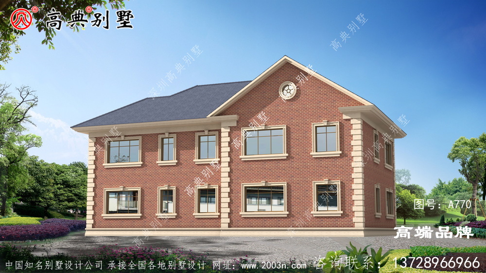 此别墅外墙主要材料:真石漆、水泥平板瓦、外墙劈开砖
