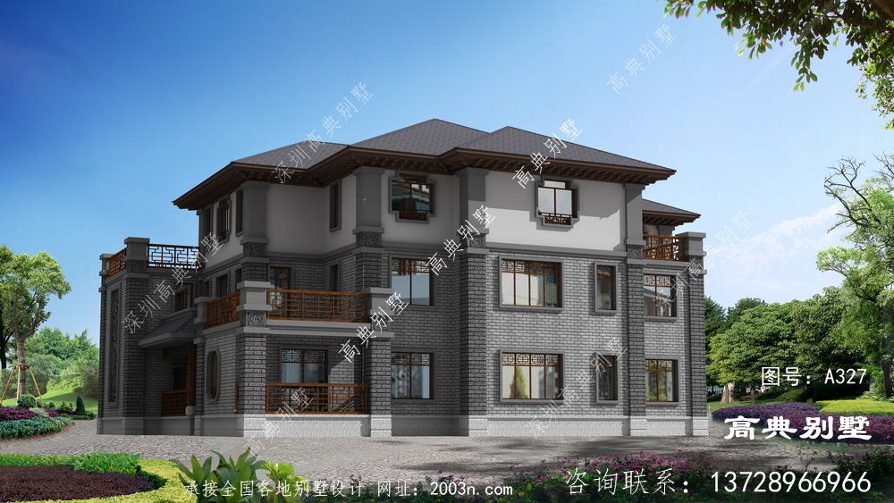 A327号别墅设计图纸及效果图介绍: